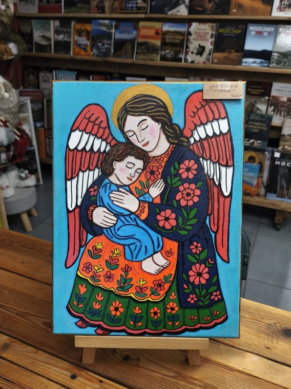 Anielskie utulenie - obraz ręcznie malowany, akryl na płótnie