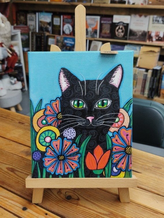 Czarny kot - obraz ręcznie malowany, akryl na płótnie