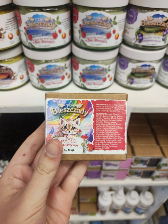 Mydło Kids by Maja Malinowy Ryś to naturalne mydło glicerynowe ze specjalnie dobranymi, delikatnymi surowcami tak by mogły go używać dzieci powyżej 3 roku życia. Przeznaczone do codziennej pielęgnacji, łagodzi oraz nawilża skórę naszych pociech. Mydło zachwyca wyglądem, a zapach soczystej maliny sprawia, że dzieci chętnie po nie sięgają. Teraz już mycie rąk po spacerze lub wieczorna kąpiel będzie dla naszych dzieci przyjemnością bez przymusu!