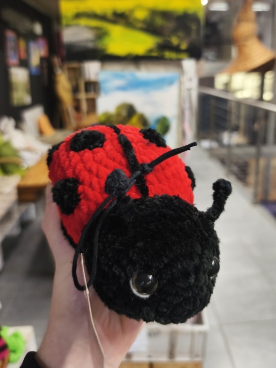 Pluszowa biedronka maskotka robiona ręcznie na szydełku