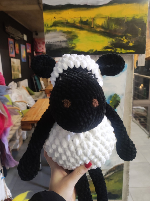 Pluszowa owca czarna maskotka robiona ręcznie na szydełku