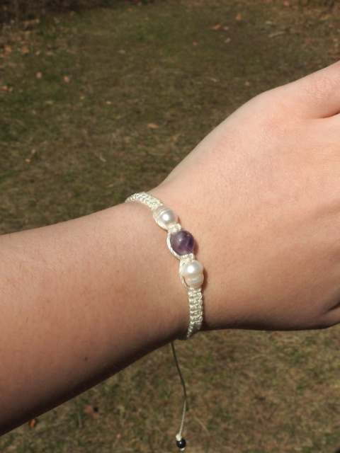 Prosta bransoletka makramowa z kamieniami naturalnymi wykonana z wytrzymałego sznurka nylonowego. Bransoletka regulowana.