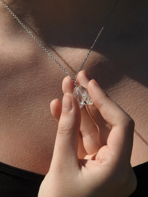 DIAMENT HERKIMER, mimo, że jest nazywany diamentem i łudząco go przypomina, tak naprawdę jest rzadką odmianą kryształu górskiego o niezwykłym połysku i ciekawym kształcie - charakterystyczne dla nich są spiczaste zakończenia po obu końcach kryształu. Kryształy herkimer wydobywane są tylko w jednym miejscu na świecie, w stanie Nowy Jork nad jeziorem George w okręgu Herkimer skąd pochodzi ich nazwa. Herkimer jest bardziej miękki niż prawdziwy diament, choć jest na tyle twardy, aby zarysować szkło. Najcenniejsze diamenty Herkimer są krystalicznie przejrzyste, a niektóre zawierają inkluzje innych minerałów, co czyni każdy każdy egzemplarz herkimeru unikatowym. Sam kryształ górski jest kamieniem o najsilniejszym działaniu oczyszczającym, z tego też powodu jest nazywany Królem Kryształów. Może być używany do dowolnego celu oraz wzmacnia moc i energię innych kryształów. Jest to potężne narzędzie do skupiania i wzmacniania naszych intencji, celów, afirmacji i manifestacji. Umożliwia nam transformację, indywidualny rozwój i życie w zgodzie z innymi ludźmi i naturą.